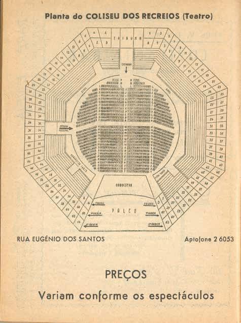 dos elevadores, outra do palco e parte da plateia, e duas do saguão do Teatro Recreio decorado com inúmeras fotografias, tanto nas paredes como em cavaletes, vitrinas, quadros etc. O texto que acompanha essas imagens fornece preciosas informações: “No hall do Recreio veem-se artisticamente dispostos, fotos coloridos [sic] e luminosos, dos artistas e girls. É importante salientar que, todos os anos, esse conjunto apresenta um aspecto diferente. A gravura fixa o hall em 1949./Um aspecto do palco do Teatro Recreio, com seus elevadores, completa instalação elétrica e disco giratório. A lotação do teatro é de 1.400 lugares entre poltronas, camarotes, balcões e galerias.”375