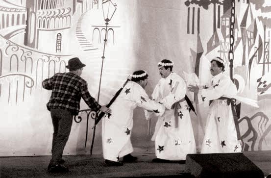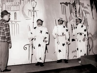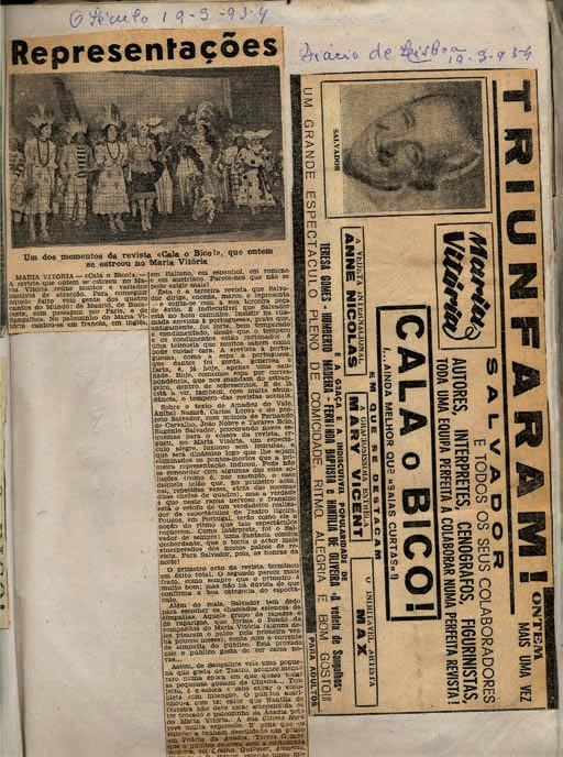 colocar em cena uma revista, como os ensaios musicais e de interpretação ou o trabalho de cenografia. Ao apresentar atividades que normalmente não são mostradas ao público e todo o esforço empreendido por diferentes profissionais nos bastidores, esta imagem, juntamente com todas as outras que compõem a reportagem, é um documento inestimável que permite ao público ter uma visão diferente da revista. Neste caso, reconhecemos que não apenas os atores e as suas personagens, mas também os trabalhadores e toda a maquinaria, permitem que a peça seja apresentada. Esta imagem é também um exemplo do interesse de revistas e jornais em mostrar aos seus leitores os bastidores do teatro, numa altura em que o cinema estava no top das preferências do público.378