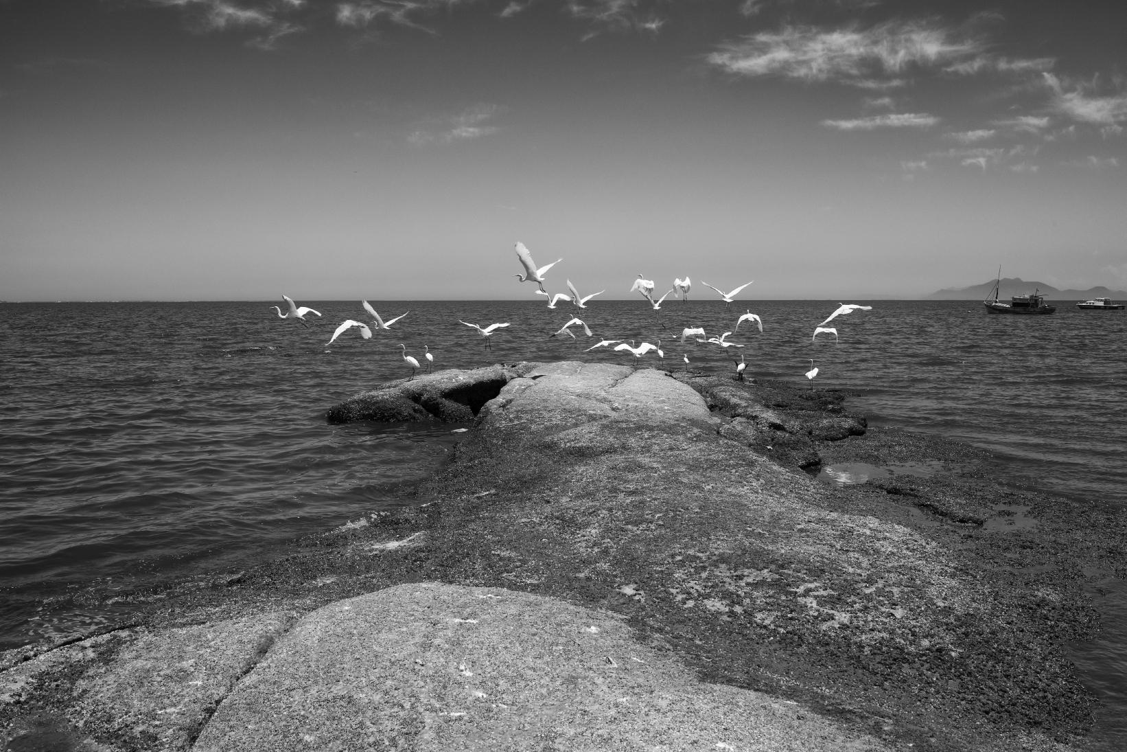 Sepetiba é um lugar onde me sinto à vontade como não me sinto em lugar nenhum. Conheço bem a região e tenho uma relação de afeto e intimidade, já que é o lugar onde cresci. Sendo um espaço que está em constante transformação, meu deslocamento por lá é movido também pela curiosidade, pela busca do que mudou e do que restou - uma espécie de “investigação afetiva”. Cruzo com muitas pessoas nas minhas andanças por lá. Muitas tardes conversando com turistas e moradores, que muitas vezes são também pescadores, barqueiros, marisqueiros e religiosos. Na maioria das vezes nem fotografo, mas gosto quando acontece. Ainda estou conhecendo essas pessoas.
