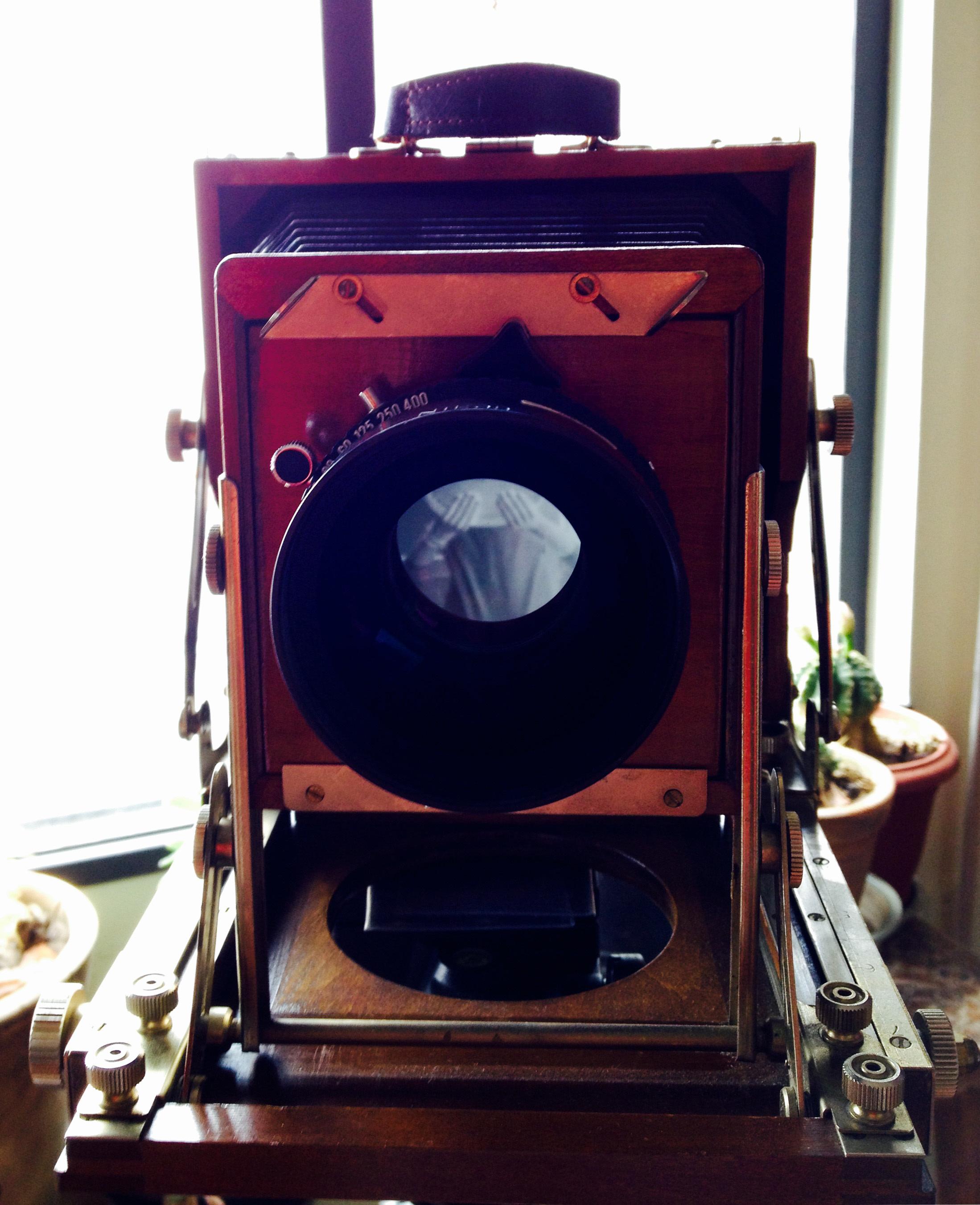 Hoje, em pleno XXI, fazemos fotos com exposição de um segundo e já se complicam os sorrisos da moçada. Isso nos dá alguns elementos para pensarmos as diferenças no processo todo, desde esse ponto de vista, entre a chapa de 4 por 5 polegadas e o filme 135 que “trabalha” com 24 por 36 milímetros. Chegando ao digital então, o contraste aumenta muito. Uma foto em grande formato toma muitos minutos para ser feita. No formato 135 (digital ou filme) é possível fazer entre 8 e 11 fotos por segundo. Parece-me tranquilo perceber aquelas diferenças mencionadas acima. O fotógrafo, mediado pelo aparelho, precisa entrar em outro ritmo para fazer a coisa acontecer. Tudo anda em baixa velocidade e um outro tipo de relação entre ele e o aparelho se estabelece. O indivíduo faz tudo menos a magia que pertence à caixa preta de madeira ou metal e a emulsão química. O pano preto, o tripé, os mecanismos de foco, o conjunto todo cria uma “proteção” para que o fotógrafo possa agir em relação com o fotografado intermediado pelo aparato todo. Na velocidade deste século a mediação do aparelho acelera o gesto do retrato diminuindo o tempo para pensar, sentir e imaginar. No interior do processo grande formato é necessário que um outro tipo de vínculo se
