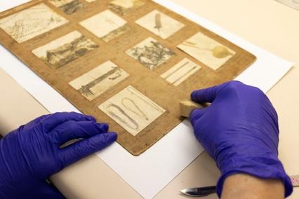 Durante o minucioso trabalho de identificação, acondicionamento e digitalização dessas pranchas, uma descoberta emocionante mudou o rumo da pesquisa: ao confrontar registros fotográficos da coleção de negativos em vidro remanescentes do sinistro com as imagens impressas, constatou-se que ao menos trinta e cinco pranchas contêm impressões positivas dos negativos originais que se acreditava terem sido totalmente destruídos no incêndio de 2018. Dois negativos sobreviventes, ainda sob a guarda da SEMEAR, foram cruciais para fazer a correlação. Além disso, registros fotográficos históricos da coleção — atualmente preservados em formato digital — possibilitaram confirmar o vínculo entre os suportes.