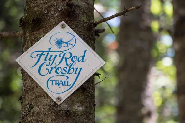 Signs mark the Fly Rod Crosby Trail, a 45-mile heritage hiking trail in the Rangeley area.