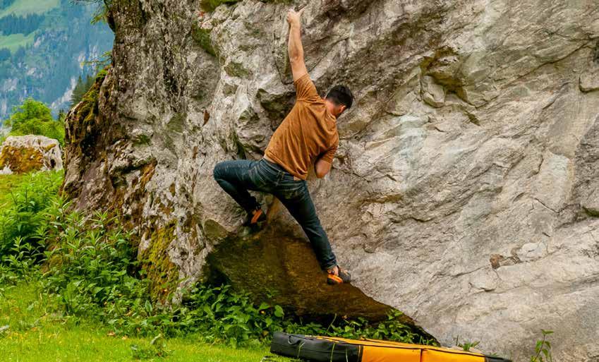 When bouldering outside, it’s a good idea to bring mats with you in case of a fall. In bouldering, you typically only climb up to 12 or 15 feet, and there’s a technique to falling safely. For example, when falling you shouldn’t try to catch yourself; it’s best to relax your body before impact. You must accept the fall, which can sound counterintuitive to the layman. But falling is part of the sport and can be part of the fun.