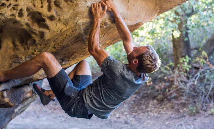 The climbing is very technical and involves testing your skills in balancing and strength to make your way through a route in the cliff face without gaining much altitude in the process. It’s a free climb based on navigating without necessarily a Point A and Point B. This is especially true for bouldering outside versus bouldering at an indoor facility, where specific routes are marked with colored rocks.