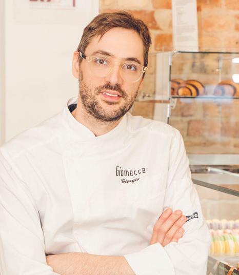 Um 3.09 Uhr klingelt der Wecker, dann beginnt sein Tag in der morgenstillen Werkstatt. Von vier bis halb sieben ist er dort allein, kocht sich seinen Tee, dann geht’s los. 30 bis 50 Törtchen pro Tag nur fürs Café, ein Puzzle aus vorbereiteten und frischen Versatzstücken, Böden, Cremes, Ganache, Füllungen, Toppings. Früher waren sie zu viert in der Backstube. In Zeiten galoppierender Lohnund Produktionskosten leistet er sich keine festen Mitarbeiter mehr. Melly, im Café für den Service zuständig, hilft, Zutaten vorzubereiten, Ehefrau Bea, gelernte Köchin und Restaurantfachfrau, legt Biskuitböden, macht Mürbteig und mehr, ehe sie den Tag über Chefin an der Theke ist. Ein eingespieltes Dreierteam. Sohn Louis, 25, geht eigene Wege, er ist Patissier im Sternerestaurant eines Baseler Hotels.