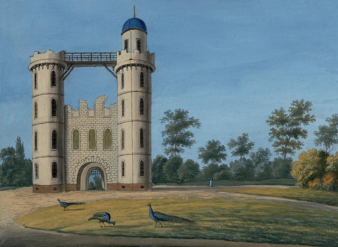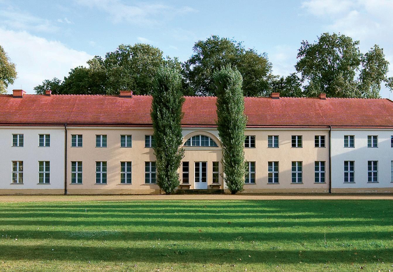 den einen Flügel des Marmorpalais einfach ausbauen zu lassen. Wer hätte damals nur geahnt, daß nach wenigen Wochen von dergleichen nie mehr die Rede seyn würde, statt dessen für Särge und Begräbnißplätze würde Sorge getragen werden müßen?!“ Bereits 1795 hatte der Kronprinz Friedrich Wilhelm das westlich von Potsdam gelegene Landgut Paretz erworben (Bild S. 28). Das schlichte, nach Entwürfen David Gillys errichtete Herrenhaus nutzte das Königspaar meist im Spätsommer zur Erntezeit. Auch die in der Havel gelegene Pfaueninsel bot mit ihrem pittoresken Schloss und der Meierei einen idealen Rückzugsort für den ländlichen Sommeraufenthalt der Familie.