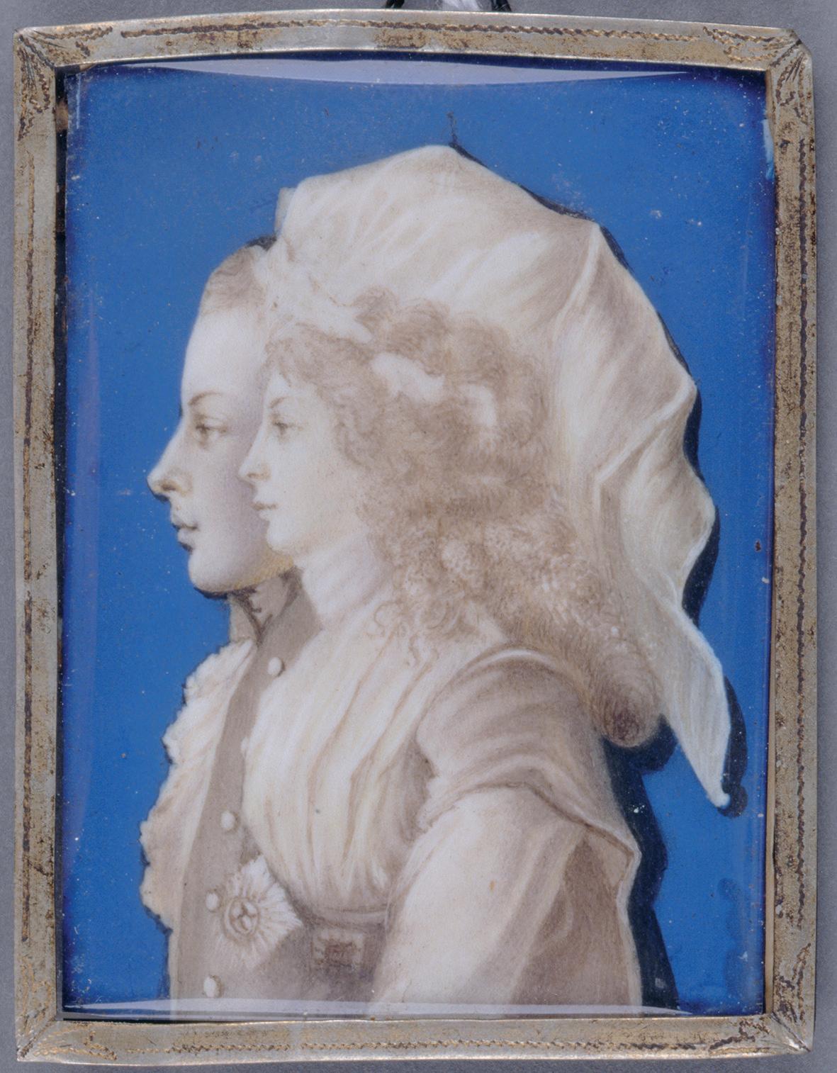 Johann Friedrich Tielker, Kronprinz Friedrich Wilhelm (III.) und Prinzessin Luise von MecklenburgStrelitz als Brautpaar, Miniatur, Elfenbein, um 1794