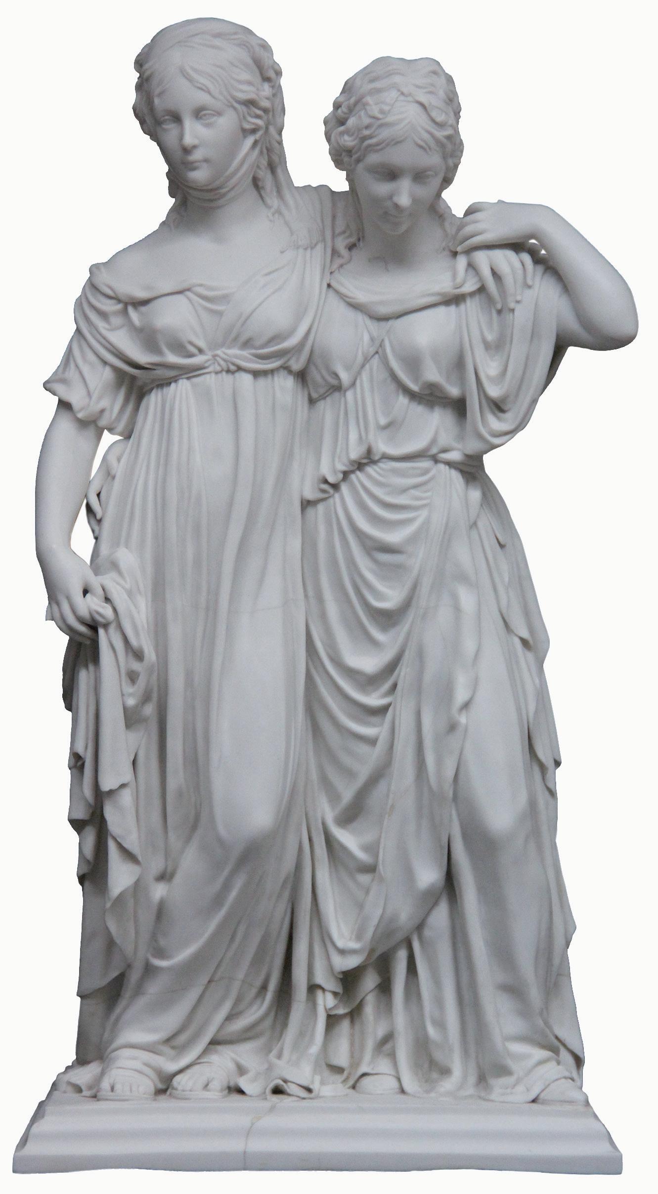 Doppelstandbild der Prinzessinnen Luise und Friederike von Preußen 1795, Ausformung nach 1870, Biskuitporzellan, KPM Berlin