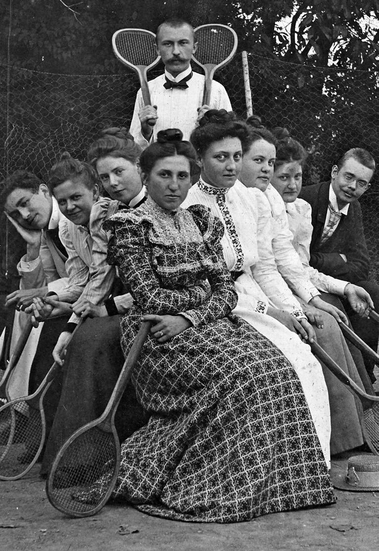 zu schwingen. Auf den überlieferten Clubfotos posieren die Herren im Hemd mit Stehkragen, die Damen im Rock und mit Rüschenbluse. Unschwer ist erkennbar, dass hier der gesellige Aspekt des Sports im Vordergrund stand. Tatsächlich galt der Verein als Kontakt- und Eheanbahnungsbörse.