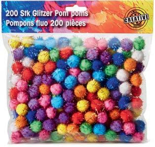 1 Pompons Glitter 200 Stk. Pompons mit Glitterfäden Ø ca. 2,3 cm.