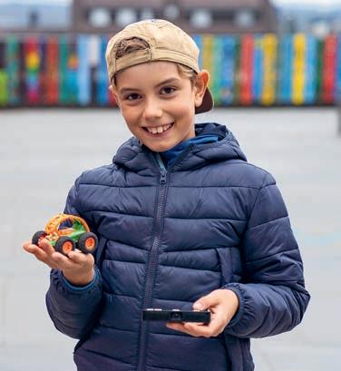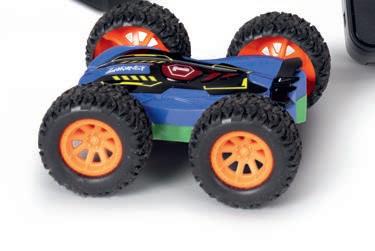 Drehungen ausführen kann. Über die Fernbedienung können sowohl die Bewegungen als auch Licht und Ton gesteuert werden. Durch seine enorme Beweglichkeit lassen sich mit dem Fahrzeug praktisch alle Sprungmöglichkeiten bewältigen, wo Bodenhaftung gegeben ist, und selbst ein aufgebauter Parkour kann spielend gemeistert werden. Grösse ca. 3,5 x 11,5 cm. Lieferung inkl. wiederladbarer Akku-Batterie, USB-La-