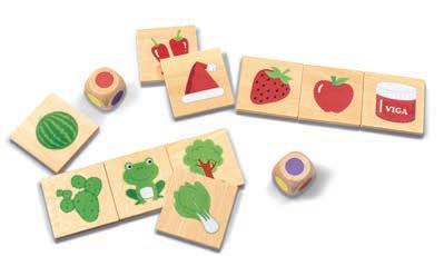 1 Farbenlernspiel aus Holz 38tlg. Welche Farbe hat der Frosch und welche die Erdbeere? Welche Gegenstände haben die gleiche Farbe? 2 Holz Farbwürfel und eine Anleitung mit verschiedenen Spielregeln sorgen für Abwechslung und Spass. 36 Holzplättchen à 6 Farben. Grösse Holzplättchen 5 x 5 cm. Ab 3 Jahren.