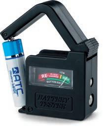 Praktischer Batterietester für AAA-, AA-, C- und 9V-Batterien.