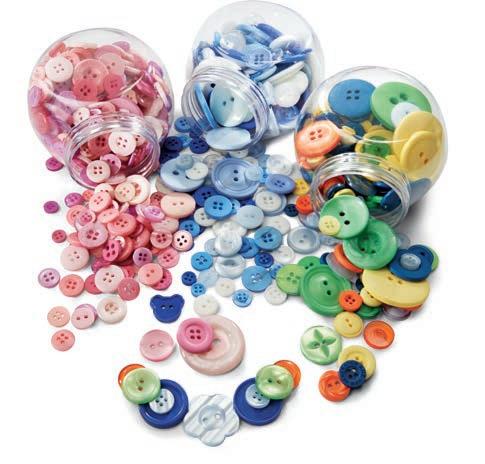 Farben und Grössen der Knöpfe lassen sich die aussergewöhnlichsten Bastelideen verwirklichen. Mach aus Bilderrahmen, Blumentöpfen, Spiegeln, Taschen, Bekleidung usw. durch Aufkleben der Knöpfe einen besonderen Blickfang. Auch für Nähübungen und Trainieren der Feinmotorik der Kinder geeignet.