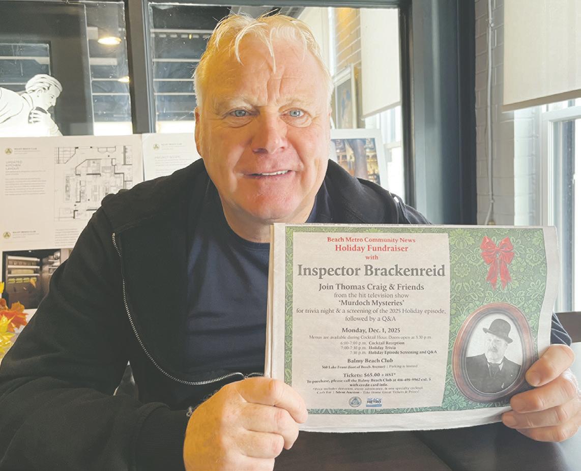 ON MONDAY, Dec. 1, the Balmy Beach Club is hosting a fundraiser for Beach Metro Community News with Beacher and actor Thomas Craig, who plays Inspector Brackenreid on the popular CBC television series Murdoch Mysteries