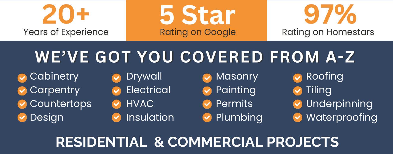 647 542 4995 abannerconstruction@gmail.com Since 2017 (19) WATERPROOFING Act Fast Waterproo ng 647-993-3466 www.actfastwaterproo ng.ca Licensed, local, award winning (17) BEACHES