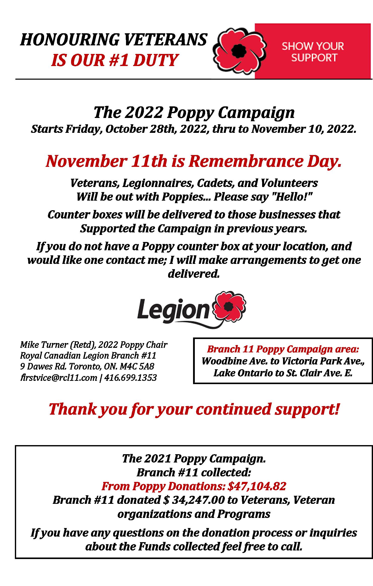 REMEMBRANCE DAY ceremonies are planned for Friday, Nov. 11, at lo cations in the Beach, East York and southwest Scarborough.