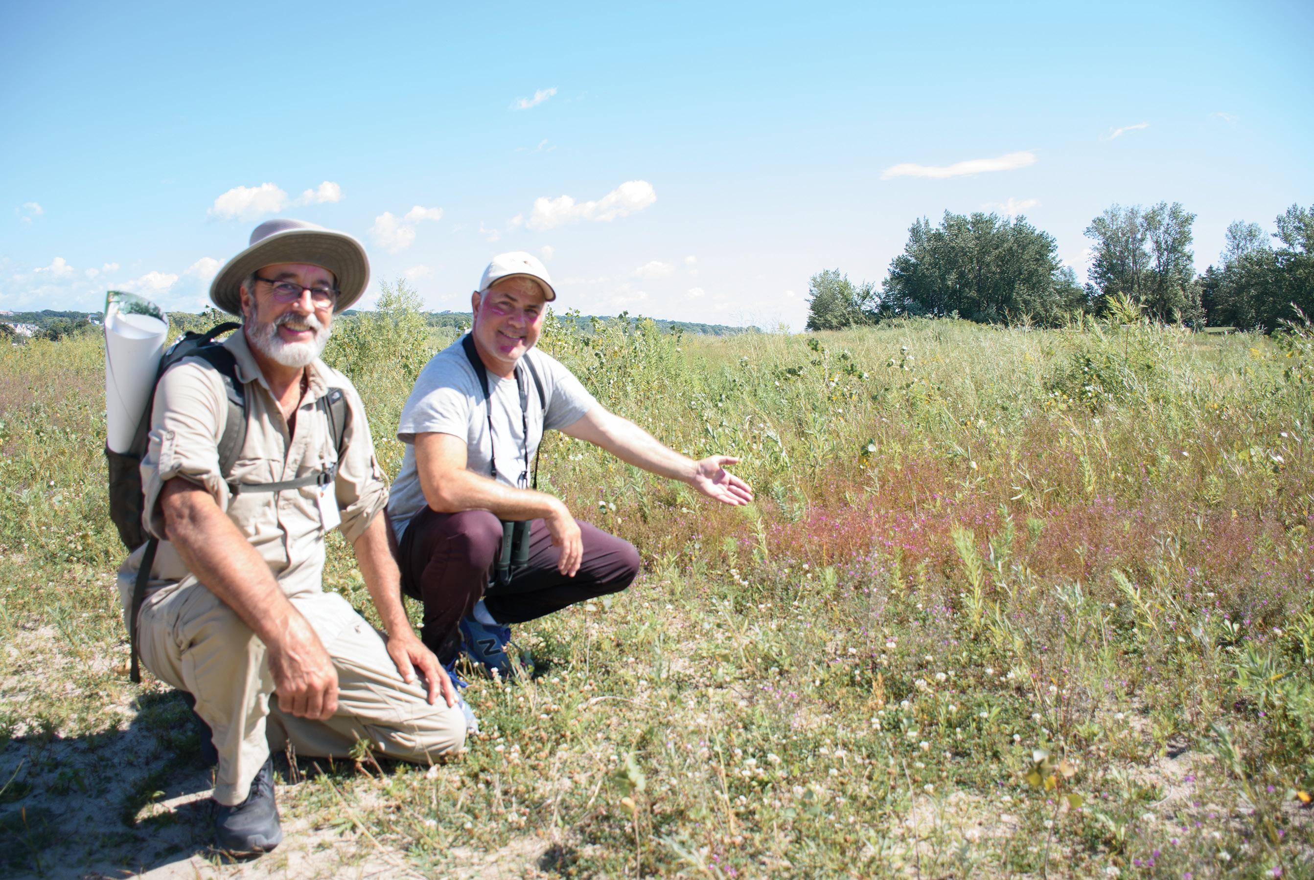 Clyde Robinson, left, and Noam Markus show some of the slender false foxglove plants in the natural area at the west end of Woodbine Beach during a walk-through with Beach Metro Community News in the late sum mer. The area is a rare habitat and needs to be protected, they say.