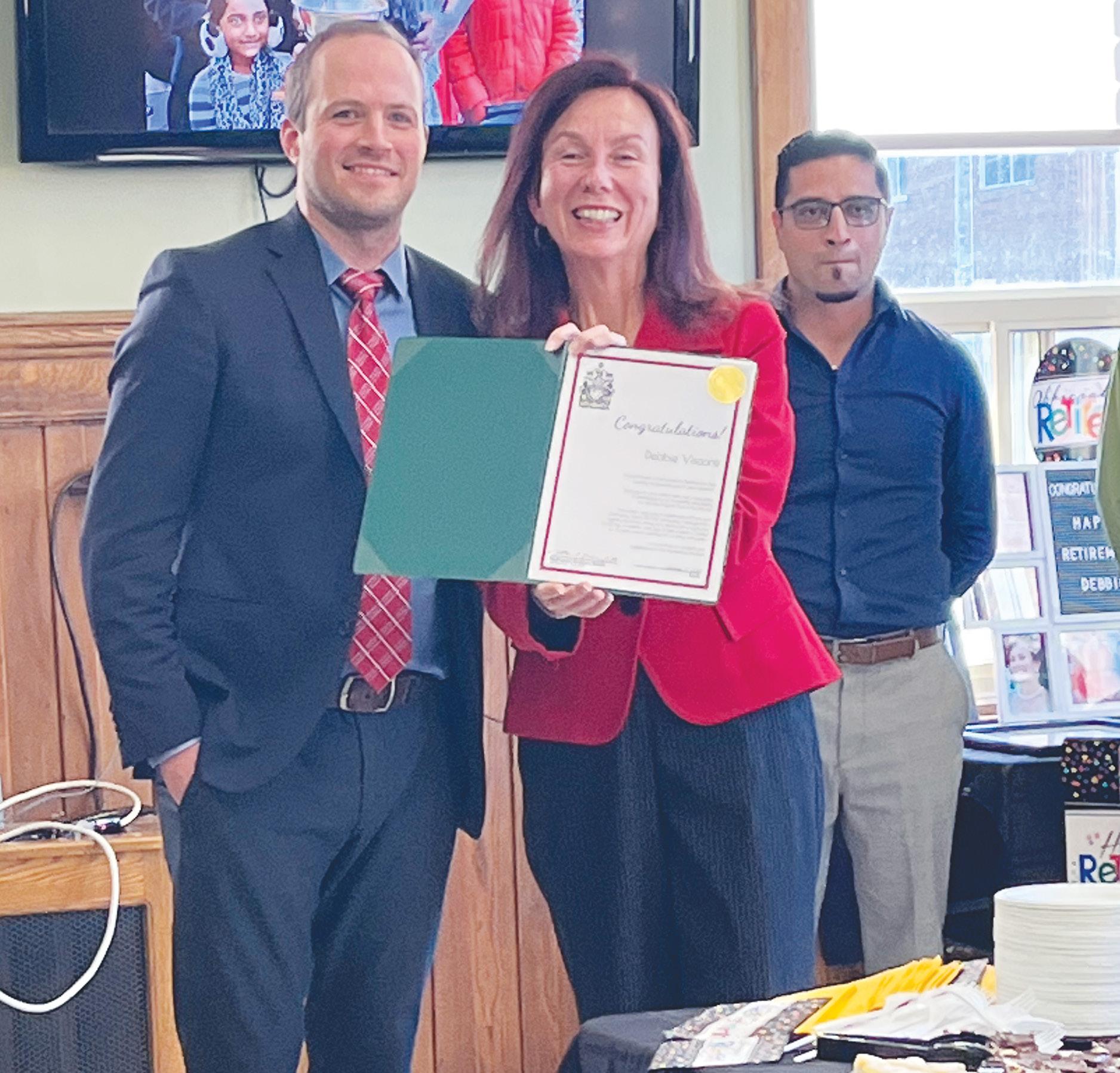 A Retirement Celebration party was held for Debbie Visconti at Community Cen tre 55 on Thursday, Oct. 27. A big crowd turned out to wish Visconti the best in her retirement after serving for 12 years as Executive Director at Community Centre 55 on Main Street. Dignitaries at the party included Beaches-East York MP Nathaniel Erskine-Smith, left, who presented Visconti with a scroll recognizing her many years of service to the community. She officially retired on Oct. 31, and the new Executive Director at Community Centre 55 as of today is Reza Khoshdel, at right of photo. Debbie Visconti thanked for service at CC55