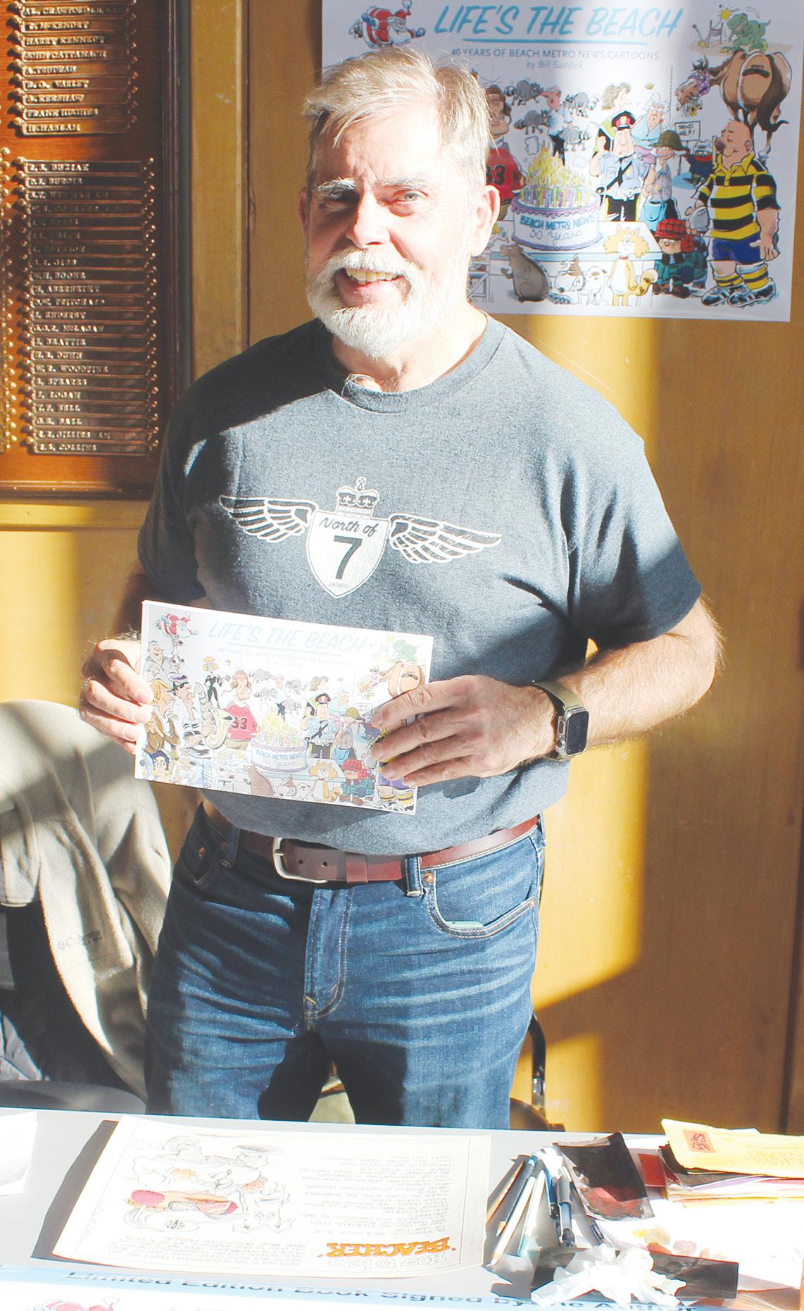 Beach Metro Com munity News cartoon ist Bill Suddick was at the Christmas Craft Market at Royal Can adian Legion Branch 1/42 on Coxwell Av enue last Saturday with copies of his book Life’s The Beach. The book celebrates Suddick’s more than 40 years as a cartoonist with the paper, and also the 50th anniver sary of Beach Metro Community News this year. Copies of the book purchased at Beach Metro’s office at 2196 Gerrard St. E. go to support the newspaper. Life’s The Beach is also available at The Great Escape, Book City and Cole’s on Queen Street East.