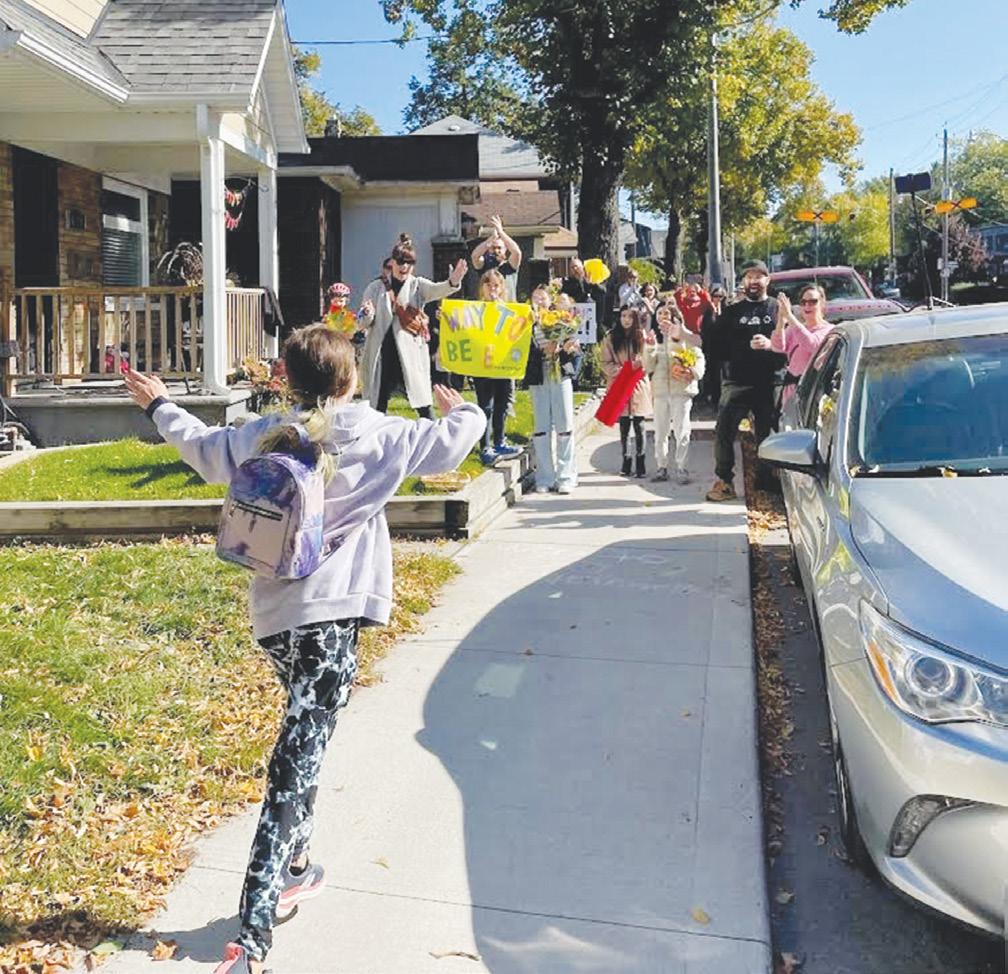 Evangeline was greeted by a large crowd of support ers when she completed the walk to her Leslieville home on Thanksgiving Day.