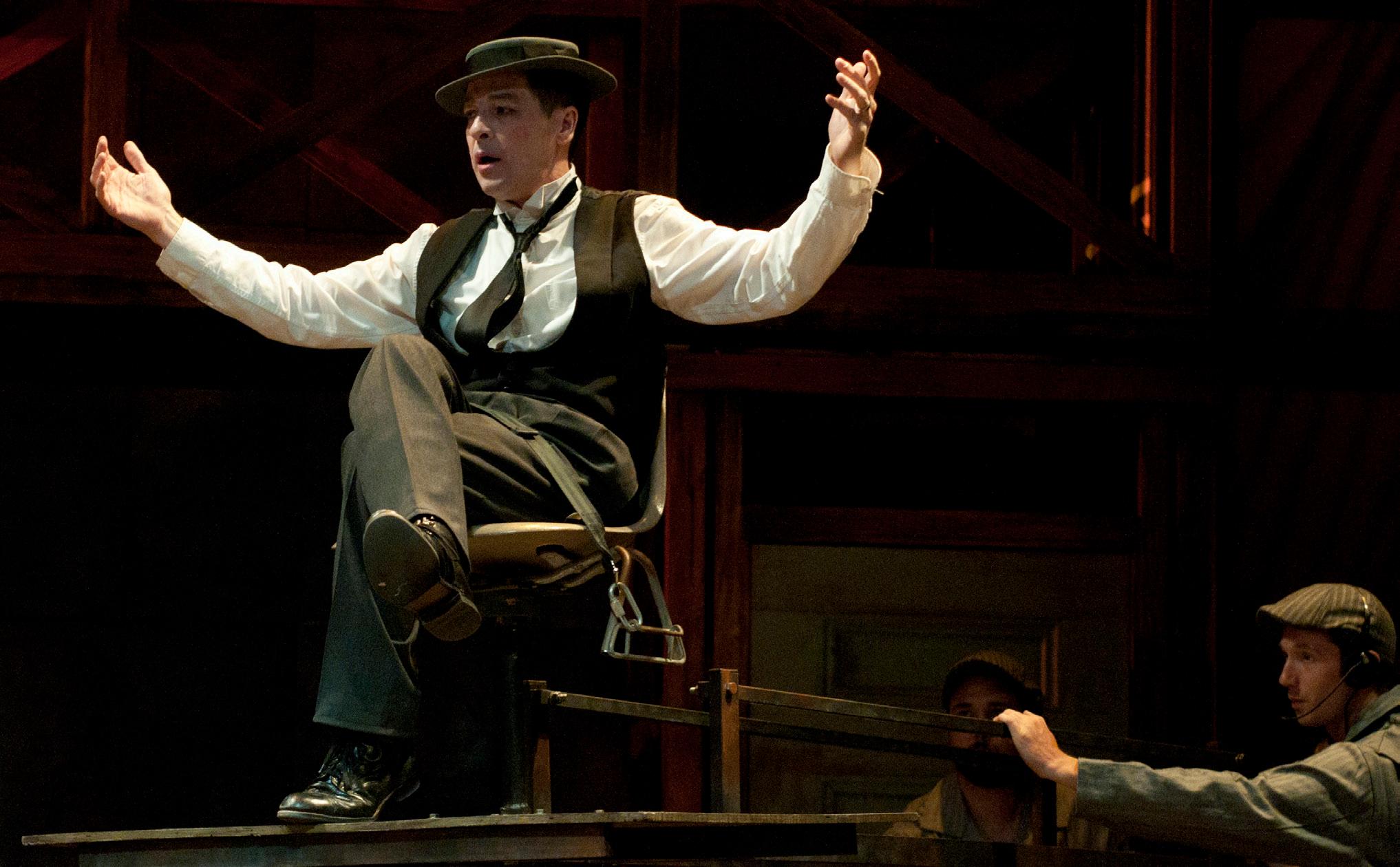 French Stewart (Buster Keaton) arrives on stage in style Wednesday for a sneak peak at the brilliant play “Stoneface” which is chronicled through the lens of his own silent films, STONEFACE recreates some of Buster Keaton’s most memorable gags live on stage, capturing the legend of a bygone era and telling the tale of the redemption of one of Hollywood’s greatest performers. -Photo by Terry Miller