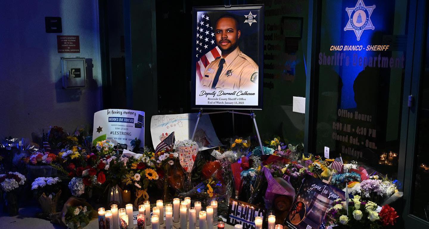 Deputy Darnell Calhoun was honored in January at a candlelight vigil in Lake Elsinore, where this memorial was set up. | Photo courtesy of the Riverside County Sheriff’s Department