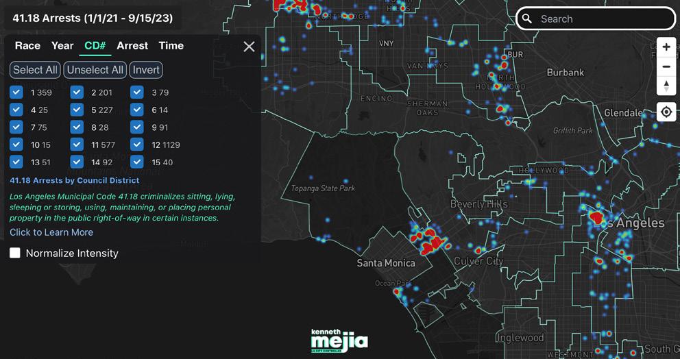 Meija’s report notes half of arrests are misdemeanors and claims the ordinance is “unevenly enforced across council districts with little relation to the number of unhoused people per council district.”