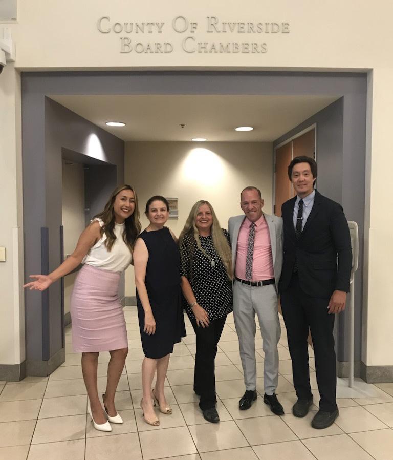 Officials tasked with addressing homelessness, from left, Riverside County Housing and Workforce Solutions officials Tanya Torno and Heidi Marshall, Corona and Norco Homeless Solutions Manager Karen Roper, HWS official Greg Rodriguez and Dr. Matthew Chang, director of behavioral health at the Riverside University Health System. | Photo courtesy of the city of Corona
