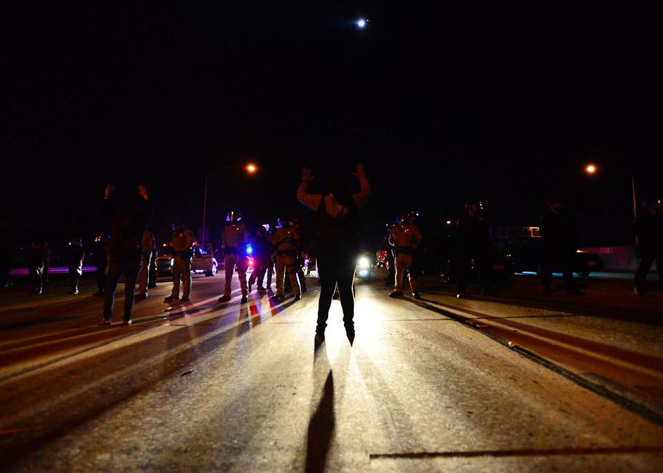 Multipleprotesters blocked all the eastbound lanes on the Ventura (134) Freeway at the Golden State (5) interchange in Glendale Wednesday evening.