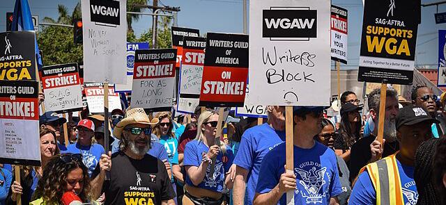 WGA members and supporters picket June 21. | Photo courtesy of ufcw770/Wikimedia Commons (CC BY 2.0)