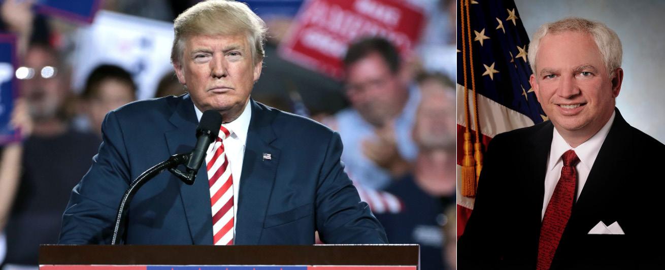 Donald Trump, left, and John Eastman. | Photos courtesy of Gage Skidmore/Wikimedia Commons (CC BY-SA 2.0) and Jeastman/Wikimedia Commons (CC BY-SA 4.0)