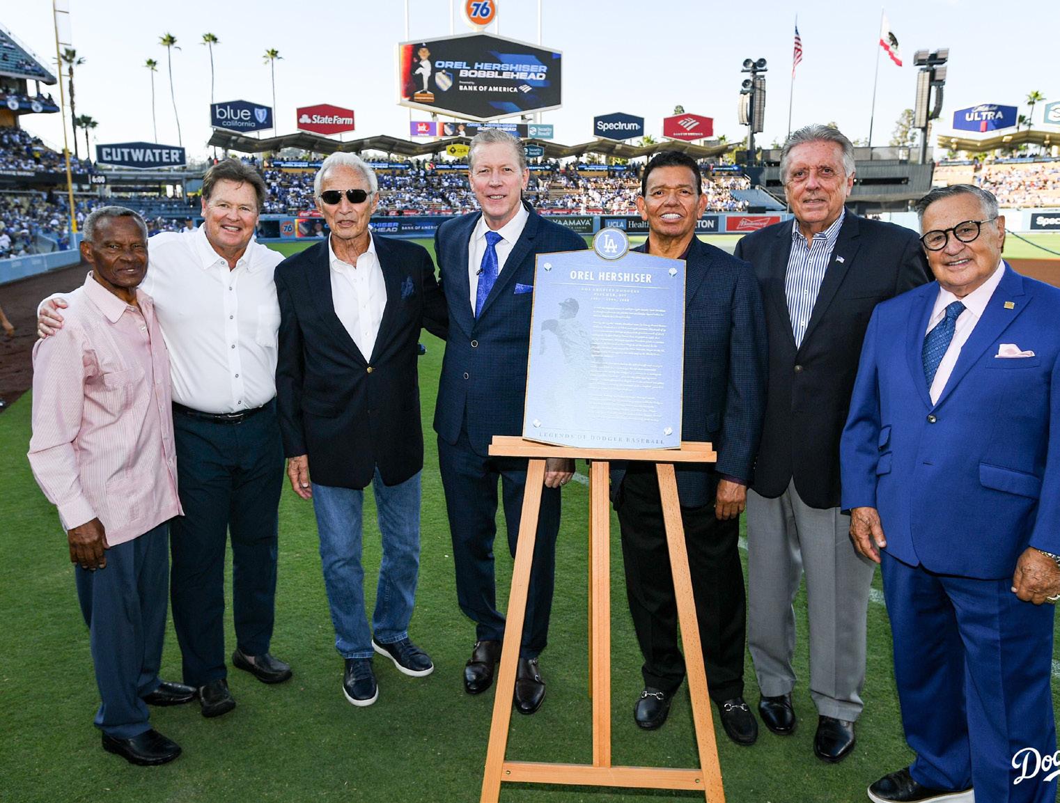 The Legends of Dodger Baseball was established in 2018 to recognize Dodger greats and their impact on the franchise, both on and off the field. Inductees receive a plaque honoring their Dodger achievements, which will be on permanent display at Dodger Stadium. Hershiser is the seventh inductee. Don Newcombe, Steve Garvey and Fernando Valenzuela were inducted in 2019. Maury Wills and Kirk Gibson were inducted in 2022. Manny Mota was inducted April 29.