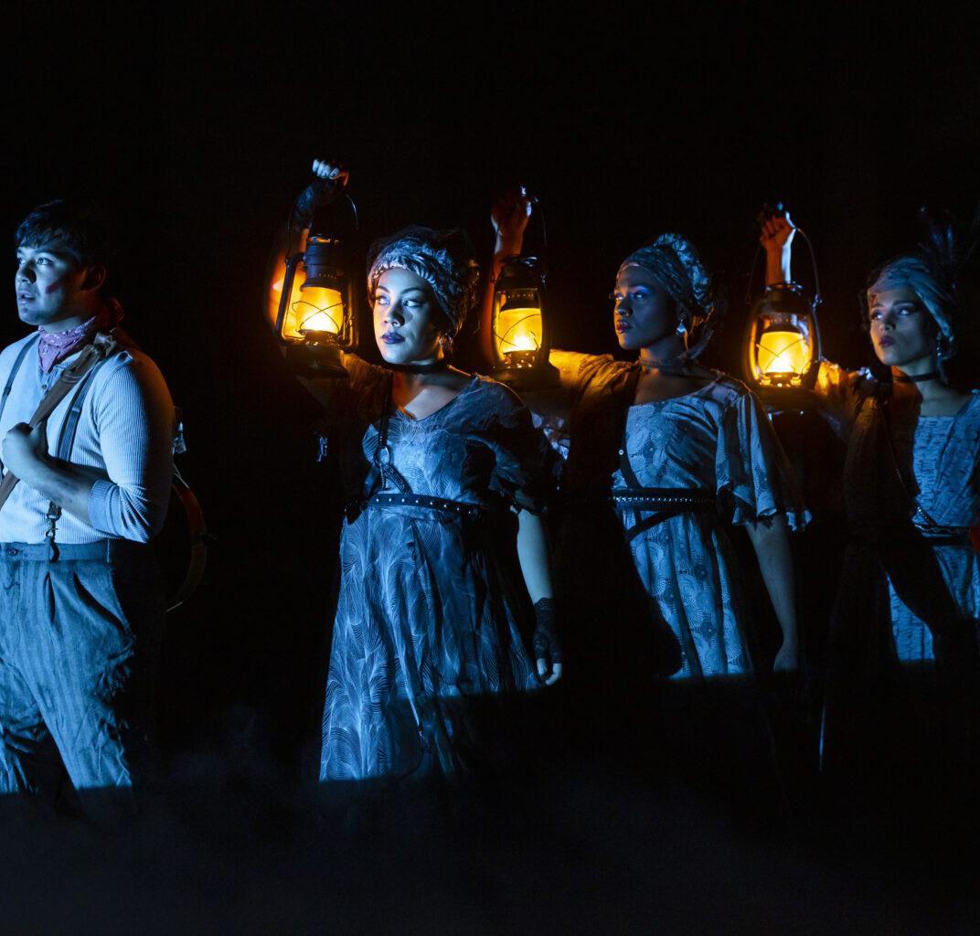 J. Antonio Rodriguez, Dominique Kempf, Nyla Watson, Belén Moyano in the “Hadestown” North American Tour playing at Center Theatre Group / Ahmanson Theatre Oct. 3 through Oct. 15, 2023. |