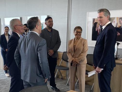 The delegation -- which includes Bass, City Council President Paul Krekorian and council members Bob Blumenfield, Hugo SotoMartinez, Monica Rodriguez and Eunisses Hernandez -met with Gov. Gavin Newsom on Tuesday morning.