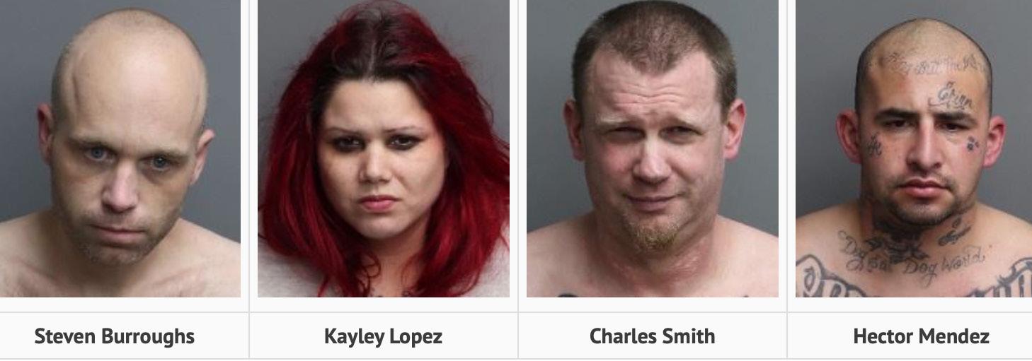 According to Sergeant Matthew Cramer, the four suspects identified as Steven Burroughs, 35, of Hemet; Kayley Lopez, 32, of Colton; Charles Smith, 44, of Hemet; and Hector Mendez, 37, of Hemet were allegedly involved in extensive check