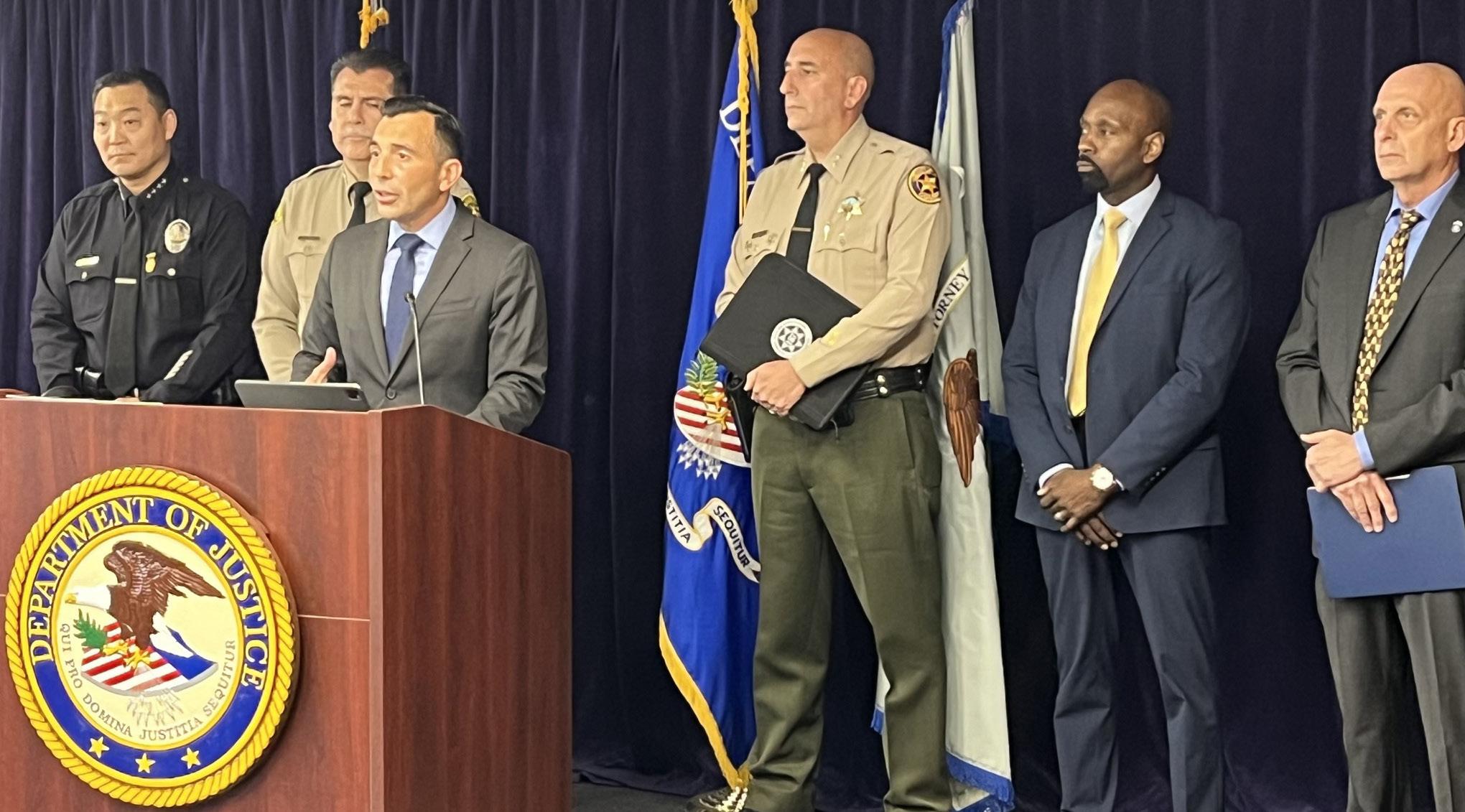 dangerous criminals about the process of presenting cases to federal prosecutors, Estrada said at a news conference in downtown Los Angeles that included officials from the Los Angeles County Sheriff’s Department, the Los Angeles Police Department, the FBI and the Bureau of Alcohol, Tobacco, Firearms and Explosives.