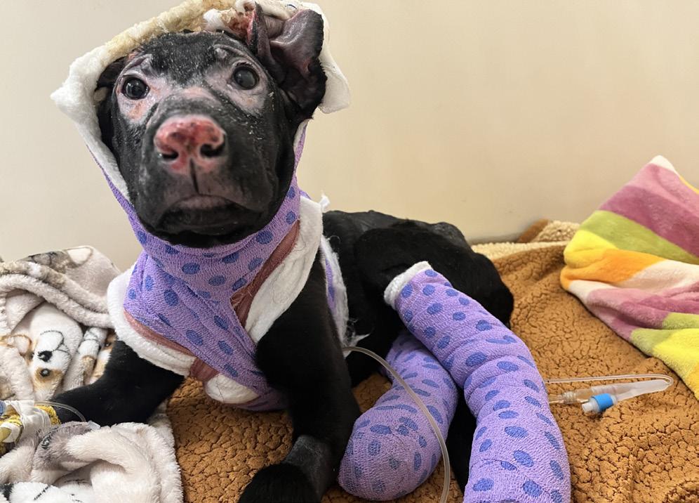 burns, named “Ember” by the vet team, required immediate hospitalization and treatment due to the severity of her injuries.