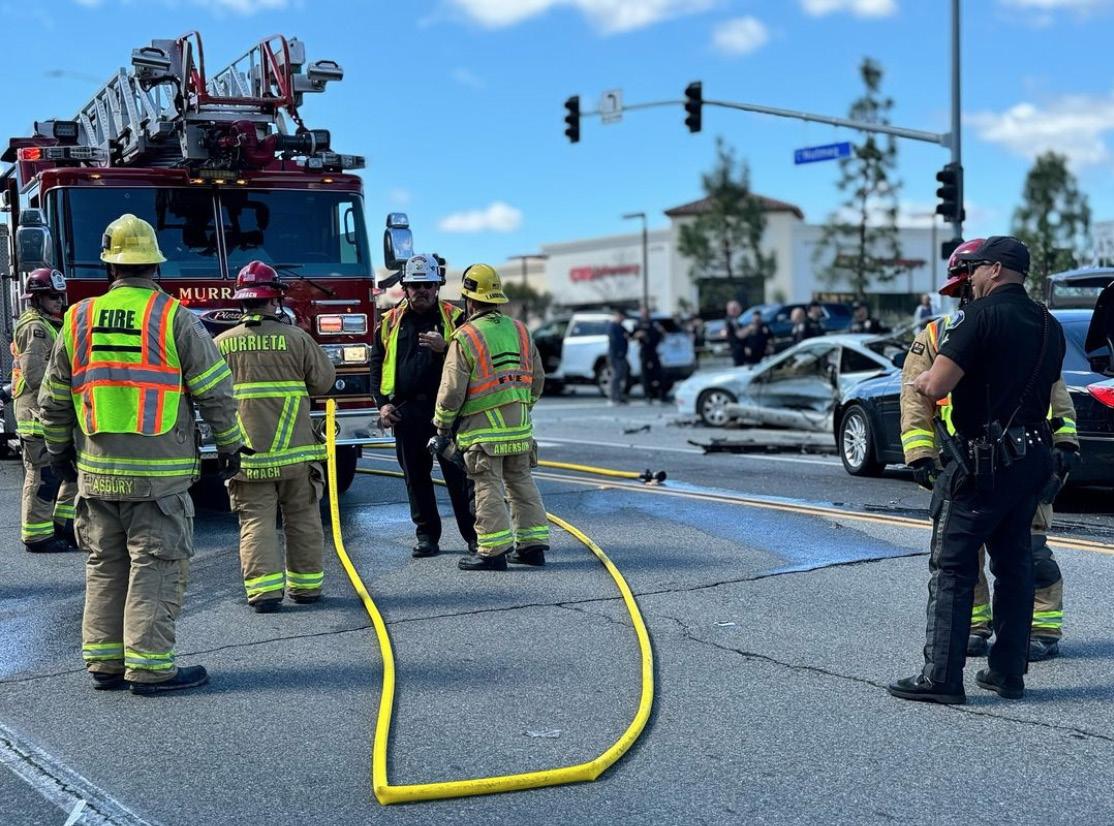 Murrieta police and firefighters respond to a multivehicle crash March 5 at Nutmeg Street and Jackson Avenue. | Photo courtesy of the city of Murrieta/Instagram | Photo by bilanol/Envato Elements