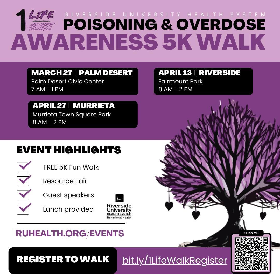 RiversideUniversity Health System’s first One Life, One Heart Poisoning and Overdose Awareness Walk got underway Wednesday in Palm Desert, with two more scheduled to take place in Riverside County next month.