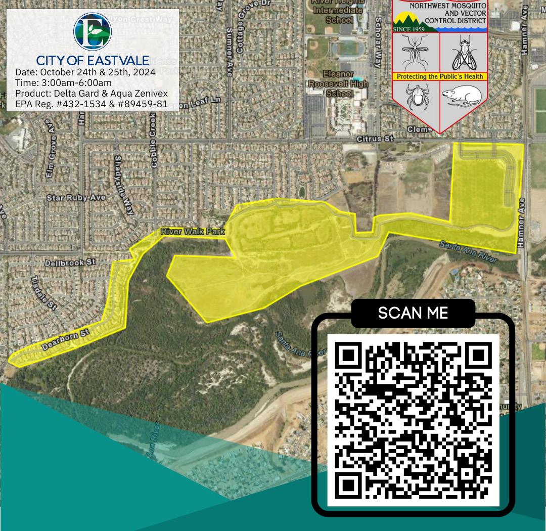 Vector control officials in Eastvale will conduct anti-mosquito spraying Thursday and Friday to eradicate growing infestations that pose a potential risk to public health.