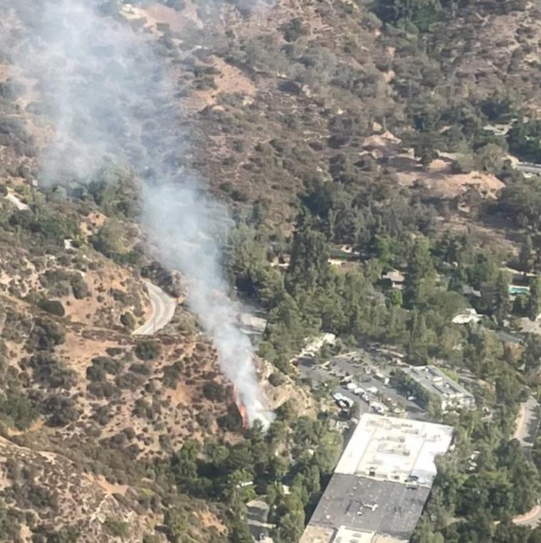 An aerial view of the 2021 fire near the ArtCenter College of Design