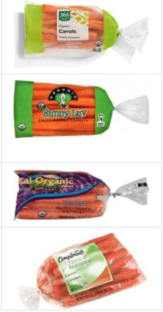 -- baby organic carrots with "best-if-used-by" dates from Sept. 11 to Nov. 12, with the brand names 365, Bunny Luv, Cal-Organic, Compliments, Full Circle, Good & Gather, GreenWise, Grimmway Farms, Marketside, Nature's Promise, O-Organic, President's Choice, Raley's, Simple Truth, Sprouts, Trader Joe's,