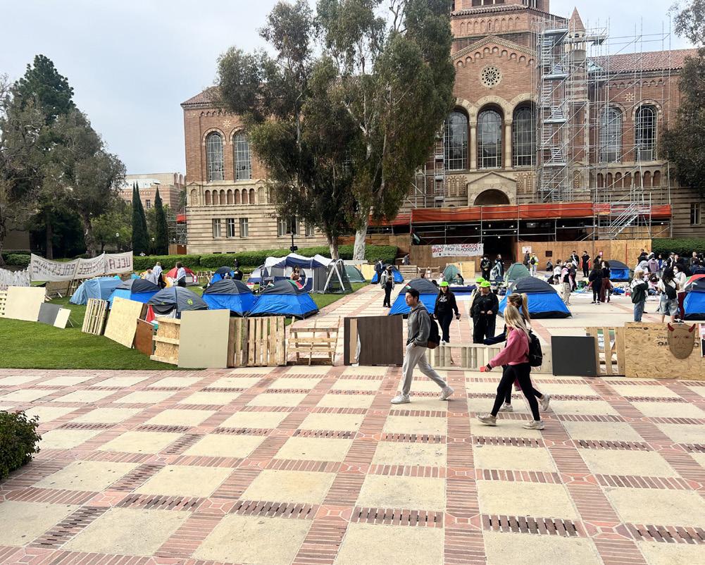 Pro-Palestine encampment established on UCLA campus, met by Israeli supporters