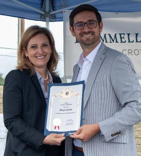 Arcadia Mayor April Verlato presents a certificate to Reece Pettersen, a Trammell Crow Residential development associate. | Photo courtesy of the city of Arcadia