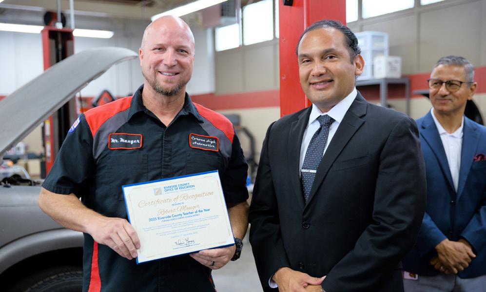 Search for reported armed suspect prompts evacuation of Riverside City College Pg 02 Riverside woman sentenced to prison after making antisemitic phone threats Pg 17 By City News Service By City News Service and Staff Superintendent of Schools Edwin Gomez congratulates Misty McBee on being selected as one of the 2024 Teachers of the Year. | Photo courtesy of the Riverside County Office of Education Bob Mauger receives his Teacher of the Year certificate from Superintendent of Schools Edwin Gomez. | Photo courtesy of the Riverside County Office of Education