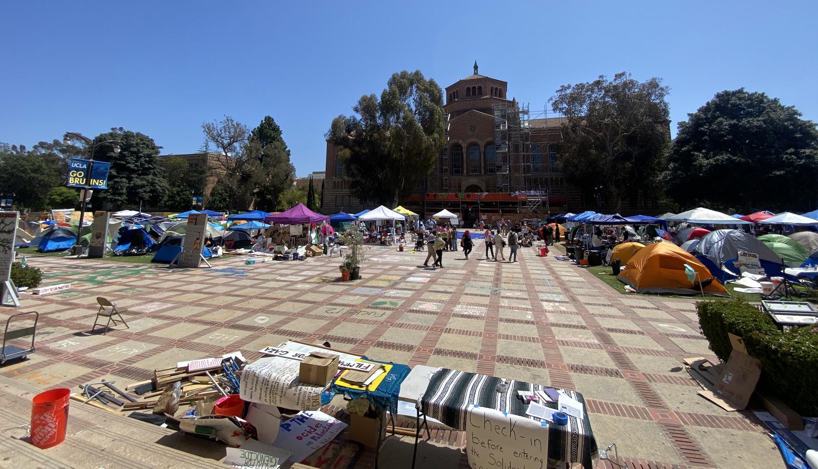 For a week, the lawsuit contends, UCLA’s administration was aware of these practices and chose to let them persist. The suit alleges that rather than clearing the encampment, UCLA instructed security staff to discourage unapproved students from attempting to cross through the areas blocked by the activists.