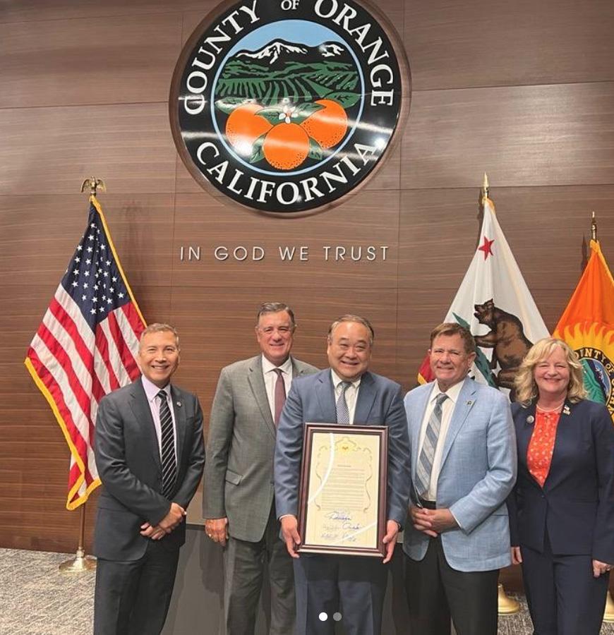 The OC Board of Supervisors recognized retiring CEO Frank Kim’s years of public service. | Photo courtesy supervisorfoley/ Instagram