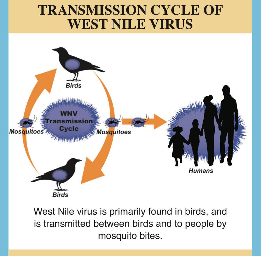 The virus generally spreads when a female mosquito bites an infected bird, becoming a carrier. Most infected people bear no symptoms, but some may develop fever, headaches, and body aches. In rare cases, hospitalizations or death can