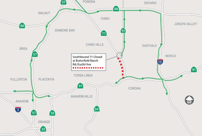 The shutdown is slated to begin at 10 p.m. Friday and continue to 5 a.m. Monday and will result in all three southbound Route 71 lanes being taken out of service from Butterfield Ranch Road in Chino Hills down to the Riverside (91) Freeway in Corona, according to the Riverside County Transportation Commission.